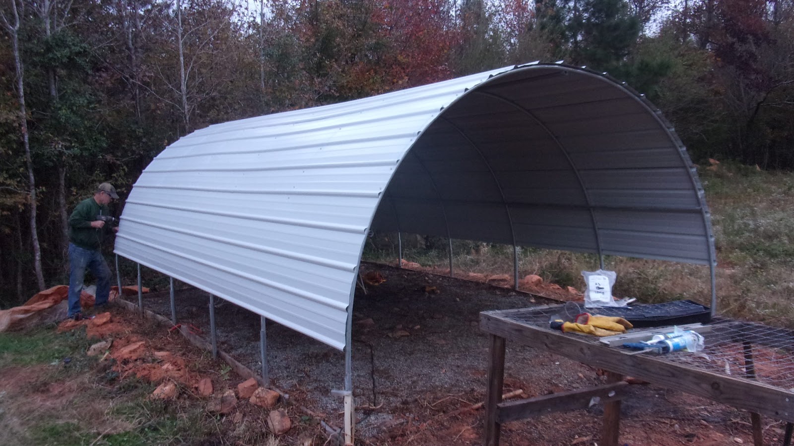 Busy times. (Seems like I am always saying that, lol.) We finished our new shed. We ended up spending a little over $300 for metal roofing and screws, which is a lot cheaper than the materials for a whole new shed and gained a shed that is 12' x 20'. It solves a lot of problems with housing some of our tools and may even provide us with some wood storage that is out of the weather. We have a greenhouse next to the house, but still end up growing most of our small plants inside due to the fact that we already heat that area, and didn't want to add extra expense or work to heat another area. We chose not to get enough panels that go all the way to the ground, as we did not think they would add value in proportion to the money spent since our main objective was just to keep the rain off of our tools.